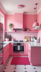 Pink into your kitchen decor offers a fantastic way to influence the mood and atmosphere. Whether you choose bold accents or subtle shades, this color has the potential to create a warm, cheerful, and inviting environment that enhances the joy of cooking and sharing meals.