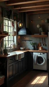 Start with your color scheme. Witchy kitchens often feature rich, dark hues like deep greens, blacks, and purples. You can paint your walls in these colors or choose earth-toned accents. Consider adding: